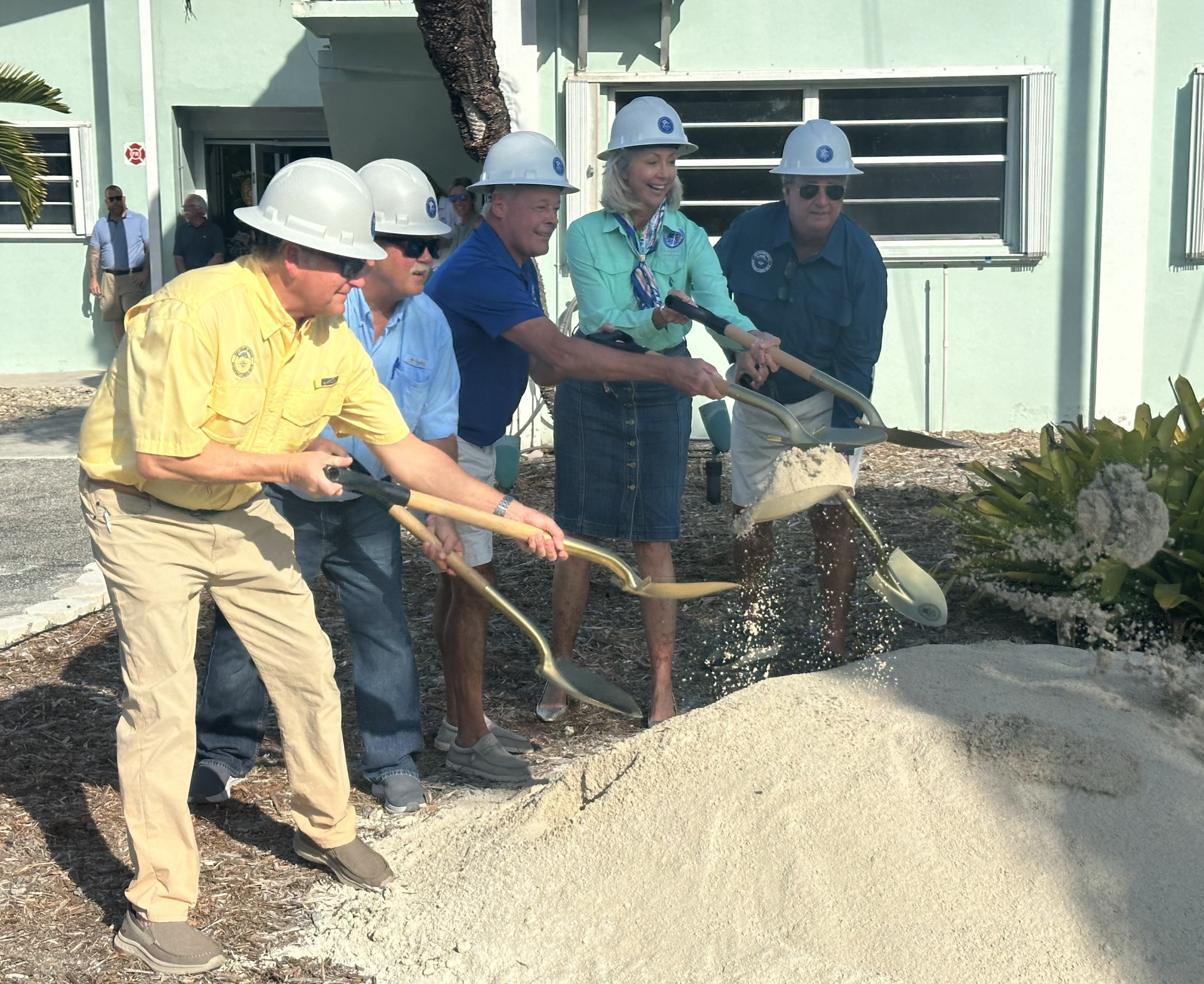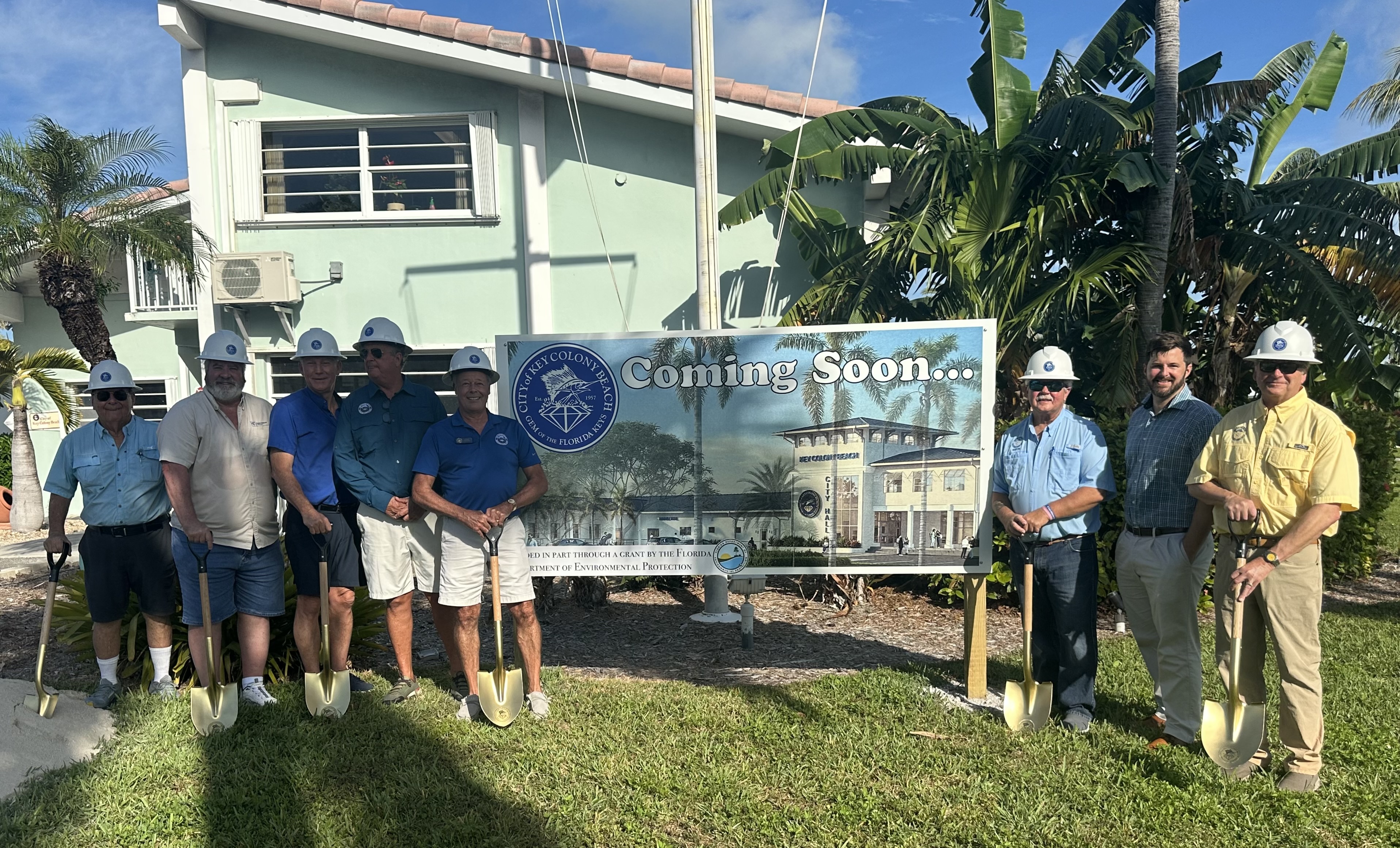 The commission broke ground for the new city hall project on Friday morning. Monroe County Mayor Michelle Lincoln, Marathon Mayor Lynn Del Gaizo, and representatives from Pedro Falcon Construction and CPH Architects joined the commissioners, city staff, and KCBers for the ceremony.